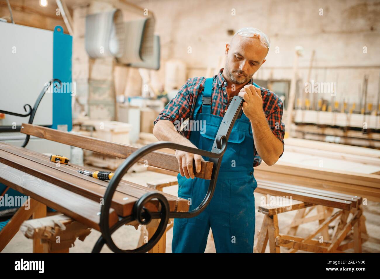 Carpenter Wooden Bench Manufacturing Joiner Job Stock Photo