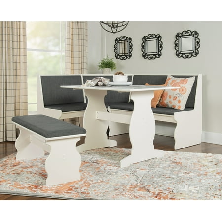 Corner nook table and bench with decorative panels. Milan lillian gloss white modern design dining table with nook and bench. Riverbay furniture breakfast nook set in charcoal.