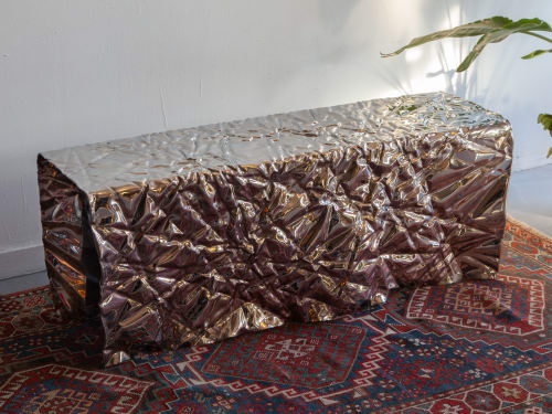 Polished Rectangle Metal Chair Bench By Christopher Prinz Seen