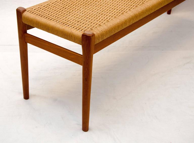 Danish Teak Bench Cord Seat J L Moller At 1stdibs