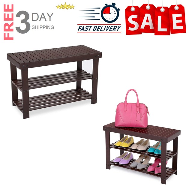 3 Tier Bamboo Shoe Rack Bench Organizer Storage Shelf Corridor