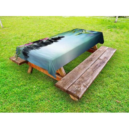 Spa Outdoor Tablecloth Tower Stone And Hibiscus With Bamboo On