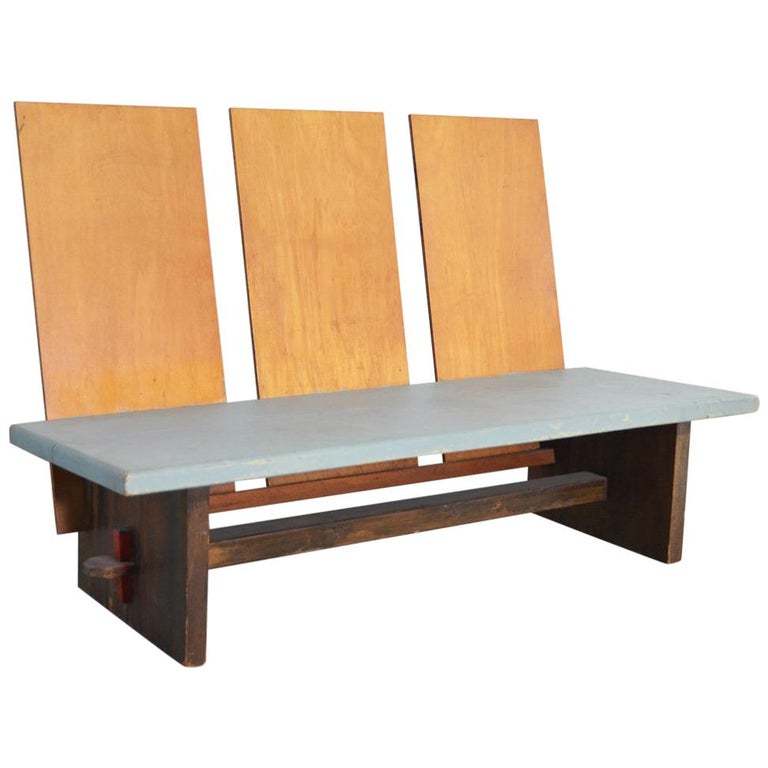 Wooden Bench In The Manner Of Dutch De Stijl Designer Gerrit