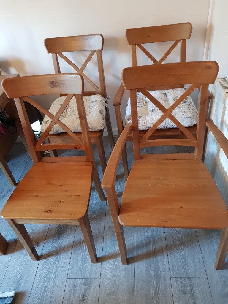 Wooden Dining Table With Matching Four Chairs And Underseat
