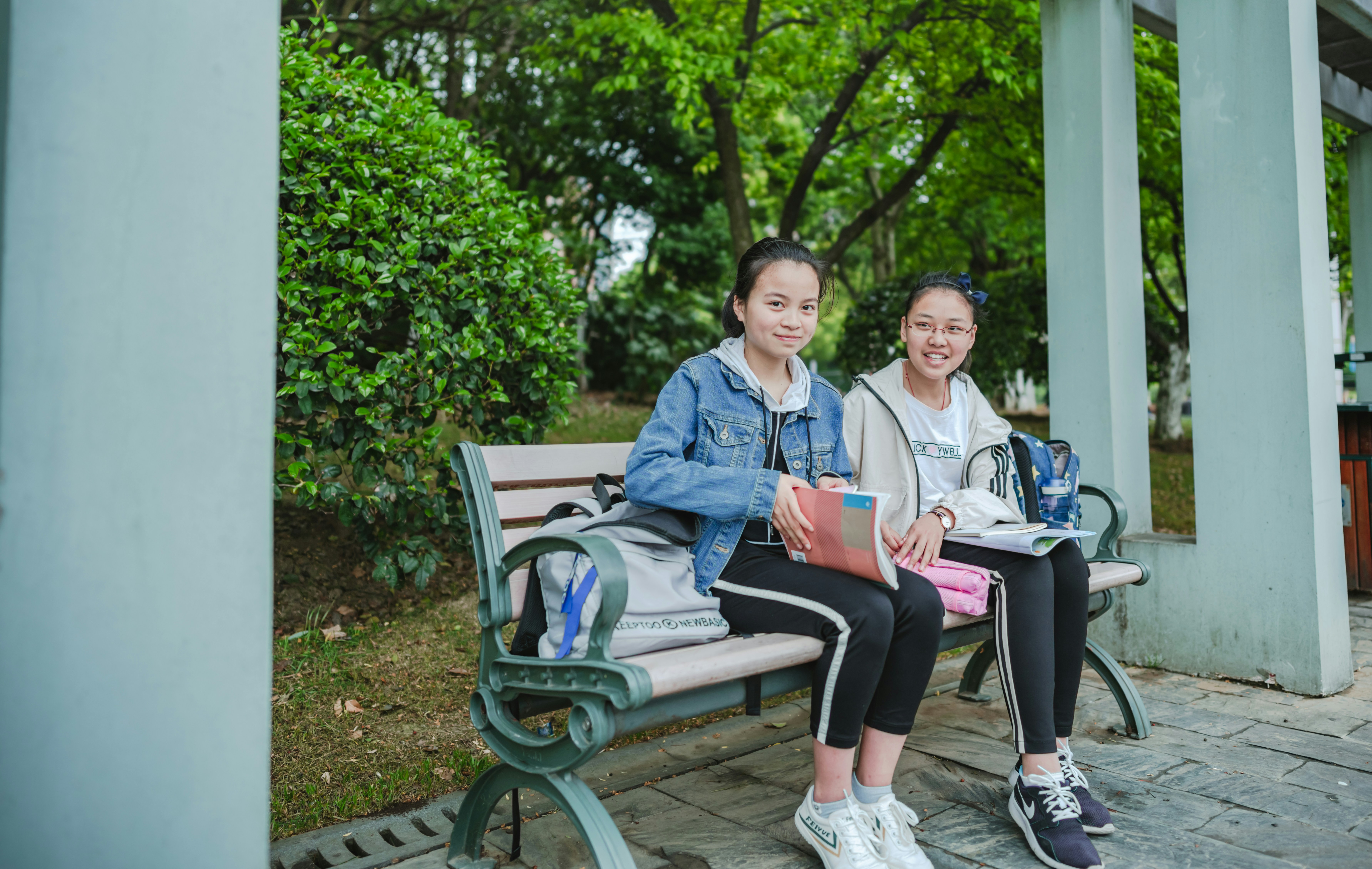 Two Girls Sitting On A Bench And Read Books Photos By Canva