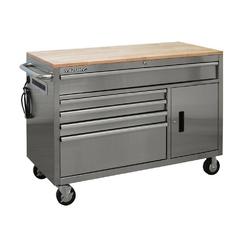 Hardwood top supports up to 3000 lbs. Max distributed weight capacity. Wide workbench features a solid hardwood top with a 3000 lb.