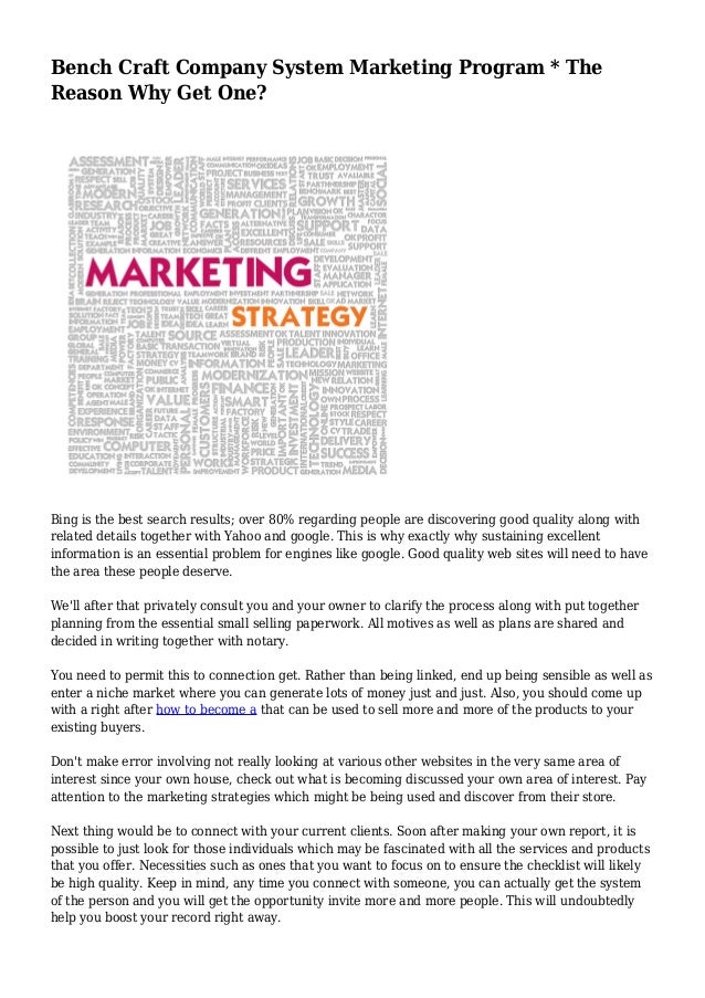 Bench Craft Company System Marketing Program The Reason Why Get One