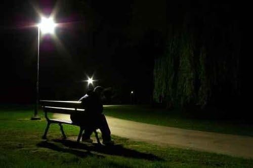 Amazon Com Lonely Man Sitting On A Bench In The Park At Night