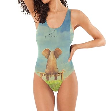 Bennigiry Women S Sad Elephant Sitting On Bench One Piece Swimsuit