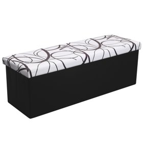 Storage Ottoman Bench Padded Seat With Retro French Print And