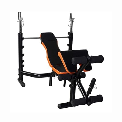 Physionics Gym Bench Press Weight Bench With Dip Bars Curl Bar