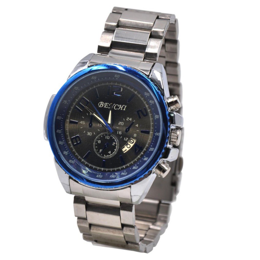 Benchi Men S Metallic Blue Bezel Wrist Watch Dark Grey Shopee