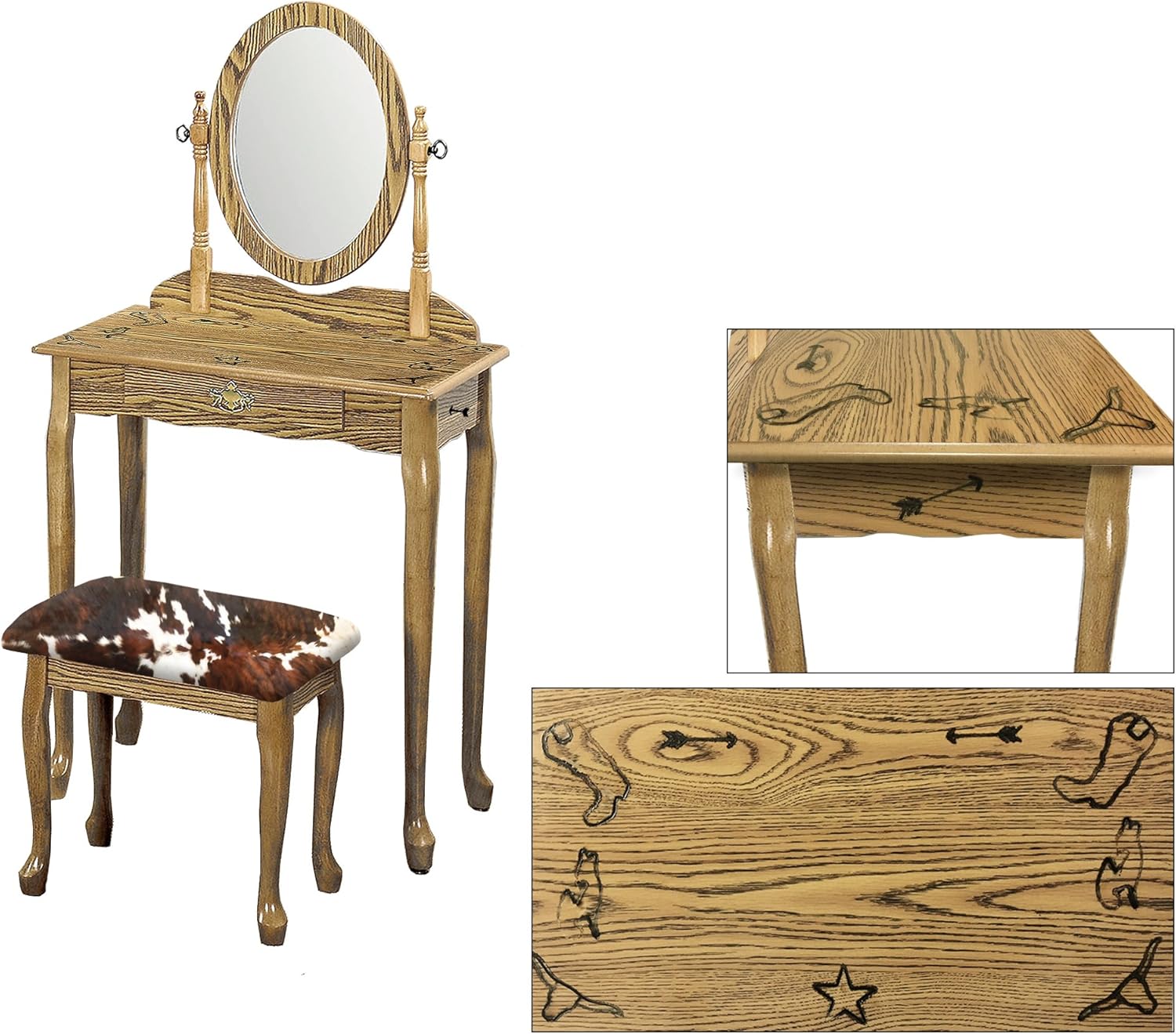 Amazon Com The Furniture Cove Light Oak Finish Queen Anne Vanity