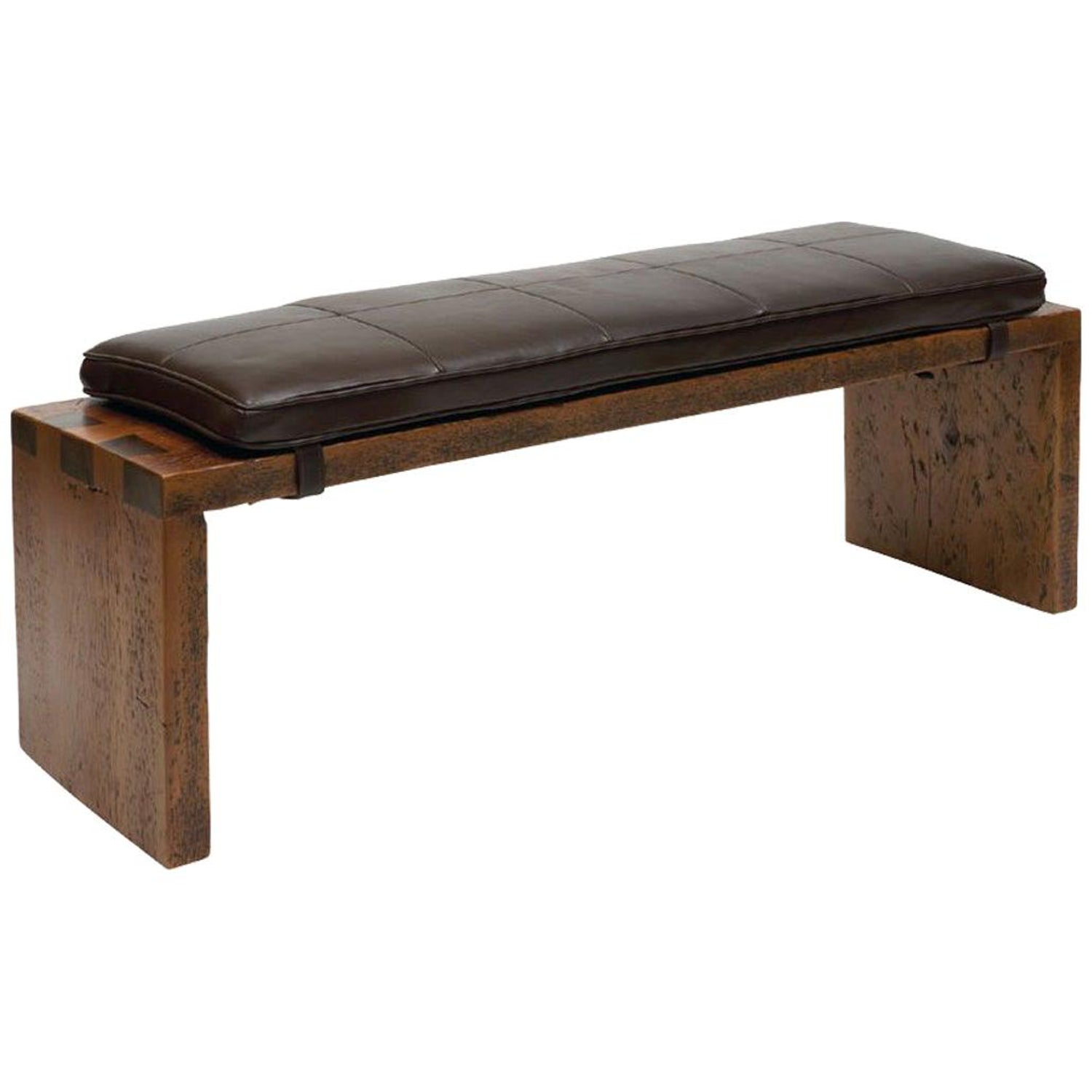 Dovetail Wood Bench With Dark Brown Leather Seat By Powell And