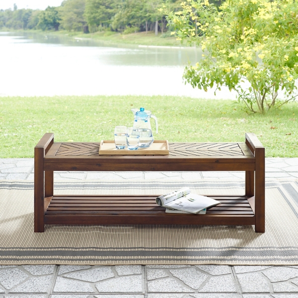 Dark Brown Acacia Outdoor Storage Bench Kirklands