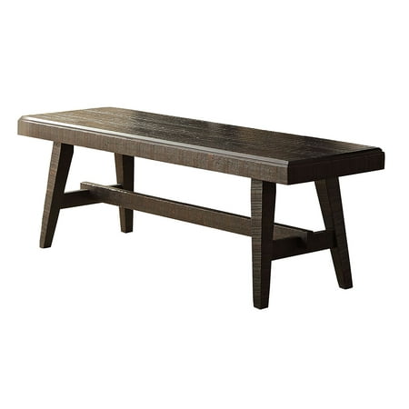 Wooden Dining Bench With Rough Hewn Saw Marks Dark Gray Walmart Com