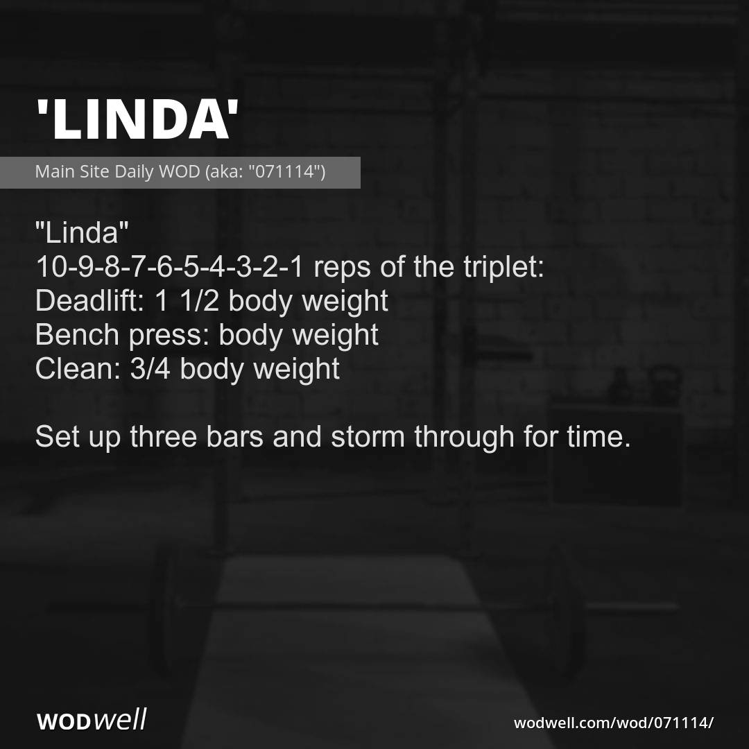Benchmark Wod Linda 10 To 1 Deadlift Bench Press Clean My