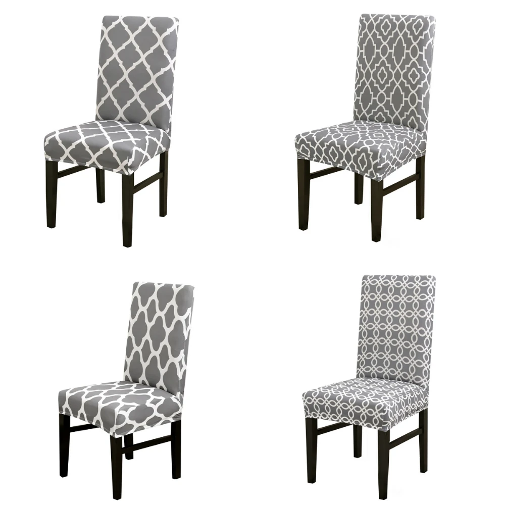 Lychee Geometric Print Chair Cover Grey Elastic Dining Room Seat