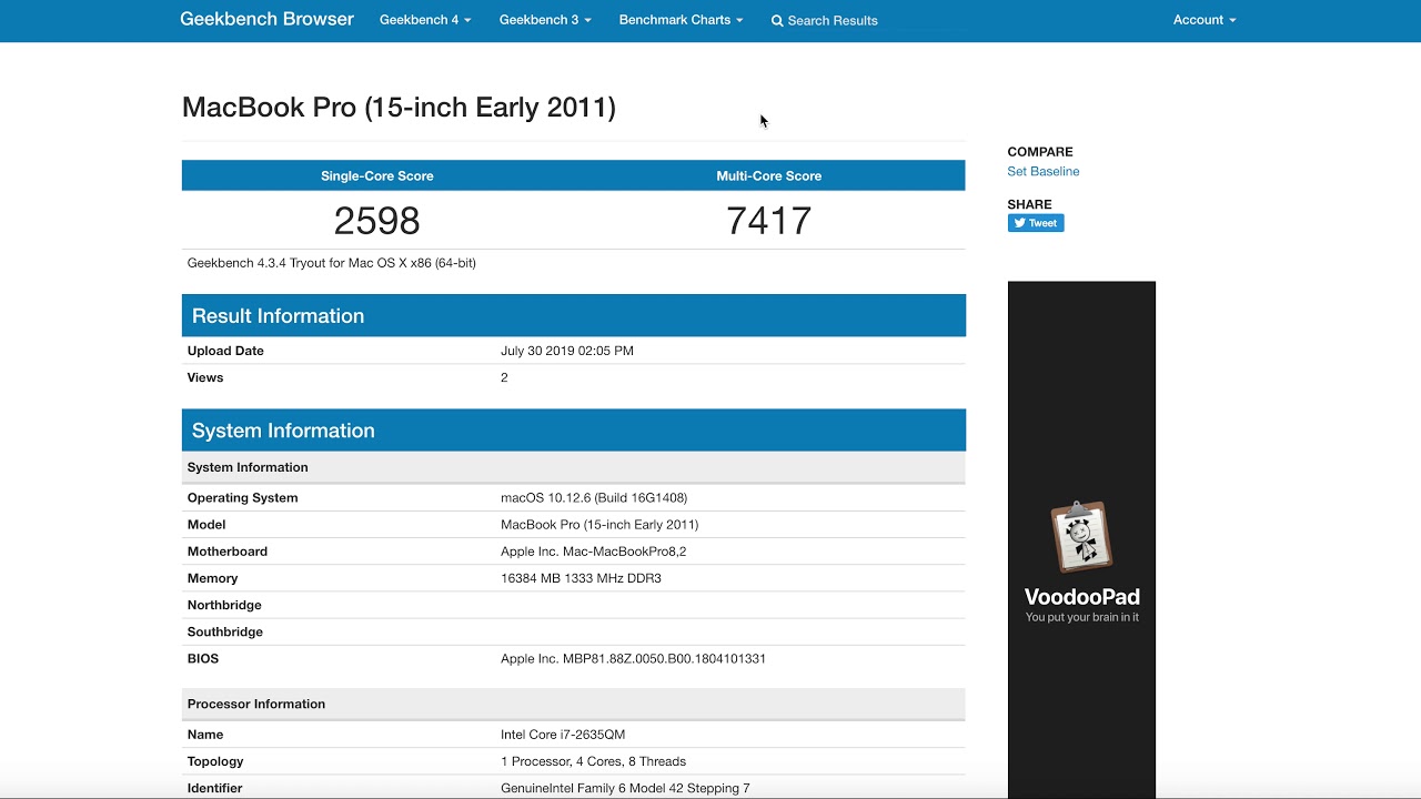 Benchmarking Macbook Pro 2011 Vs Macbook Pro 2019 Geekbench