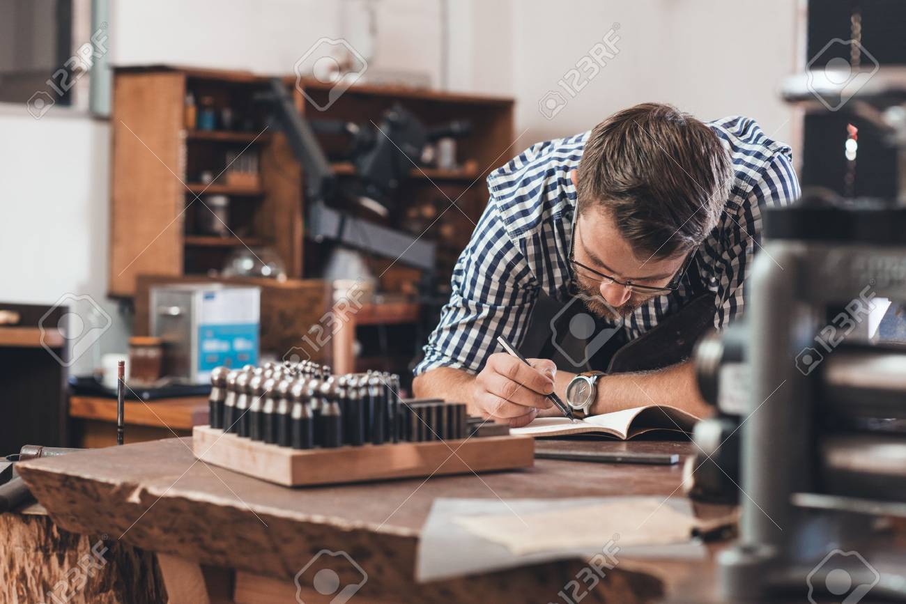 Jeweler Leaning On A Bench Sketching Out New Jewelry Designs