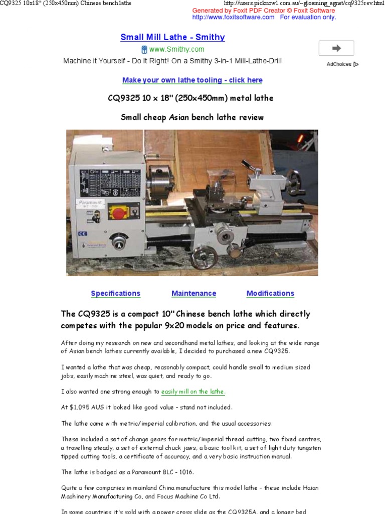 Metal Bench Lathe 350mm Bc Mini Paramount Browns Adelaide