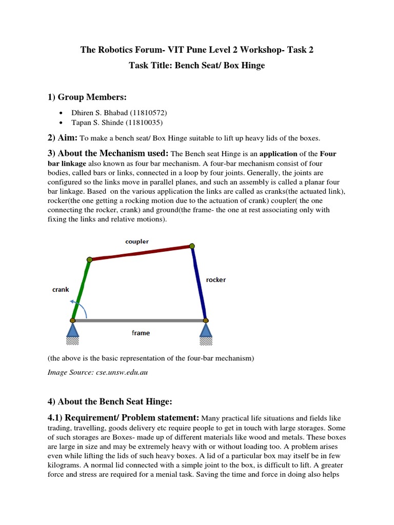 Documentation For Bench Seat Hinge Mechanism Tapan N Dhiren Docx