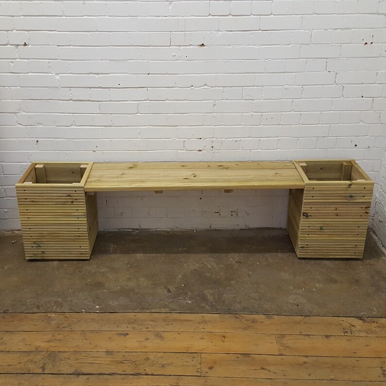 Wooden Garden Bench 192cm With Square Planters Decking Etsy
