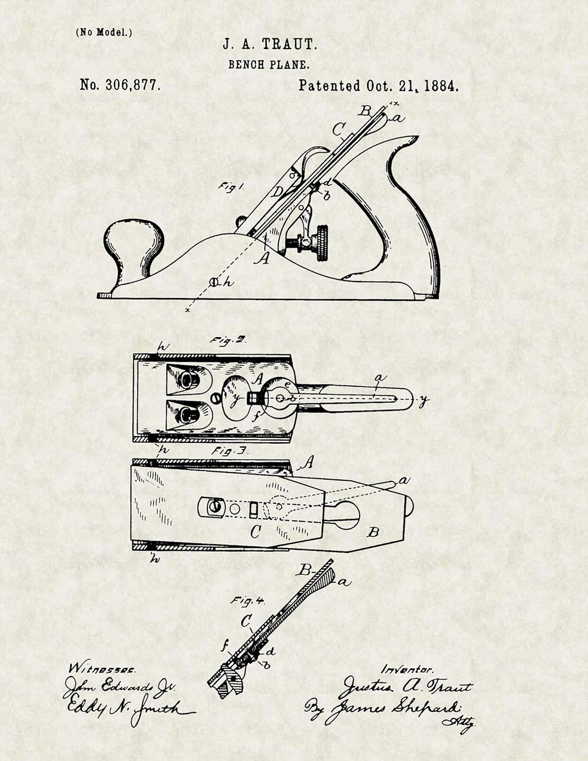 Amazon Com 1884 Bench Plane By J A Traut Vintage U S Patent 8 5