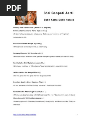 Ganpati Aarti Sukh Karta Translation Hindu Worship Indian
