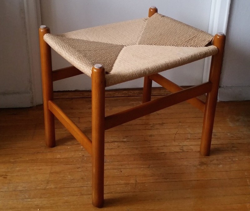 Mid Century Danish Modern Teak Paper Cord Footstool By K D