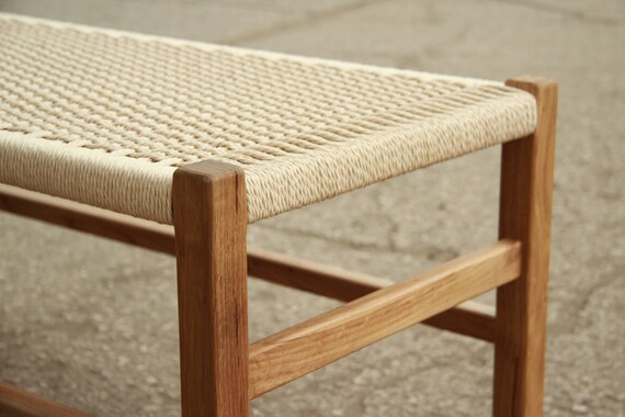 Solid Oak Bench With Woven Danish Cord Seat Bedside Bench Etsy