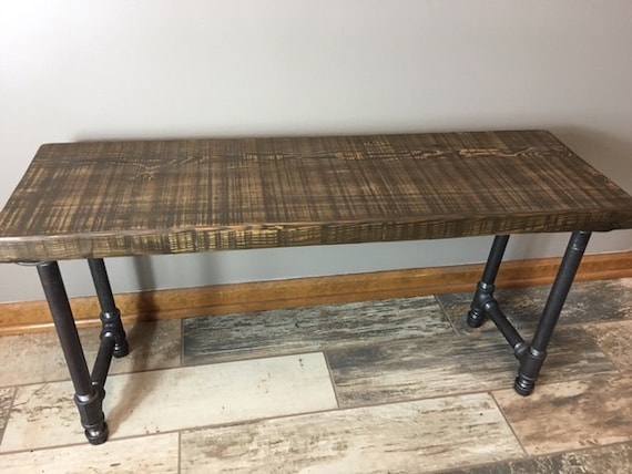 Wooden Reclaimed Urban Bench Industrial Gas Pipe Leg Base Etsy
