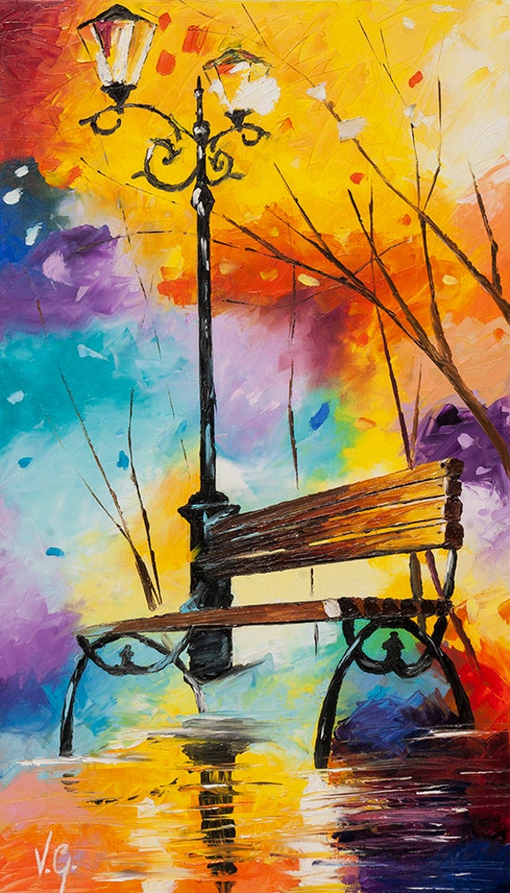Bench Decor Park Fine Art Oil Painting On Canvas By Leonid Etsy