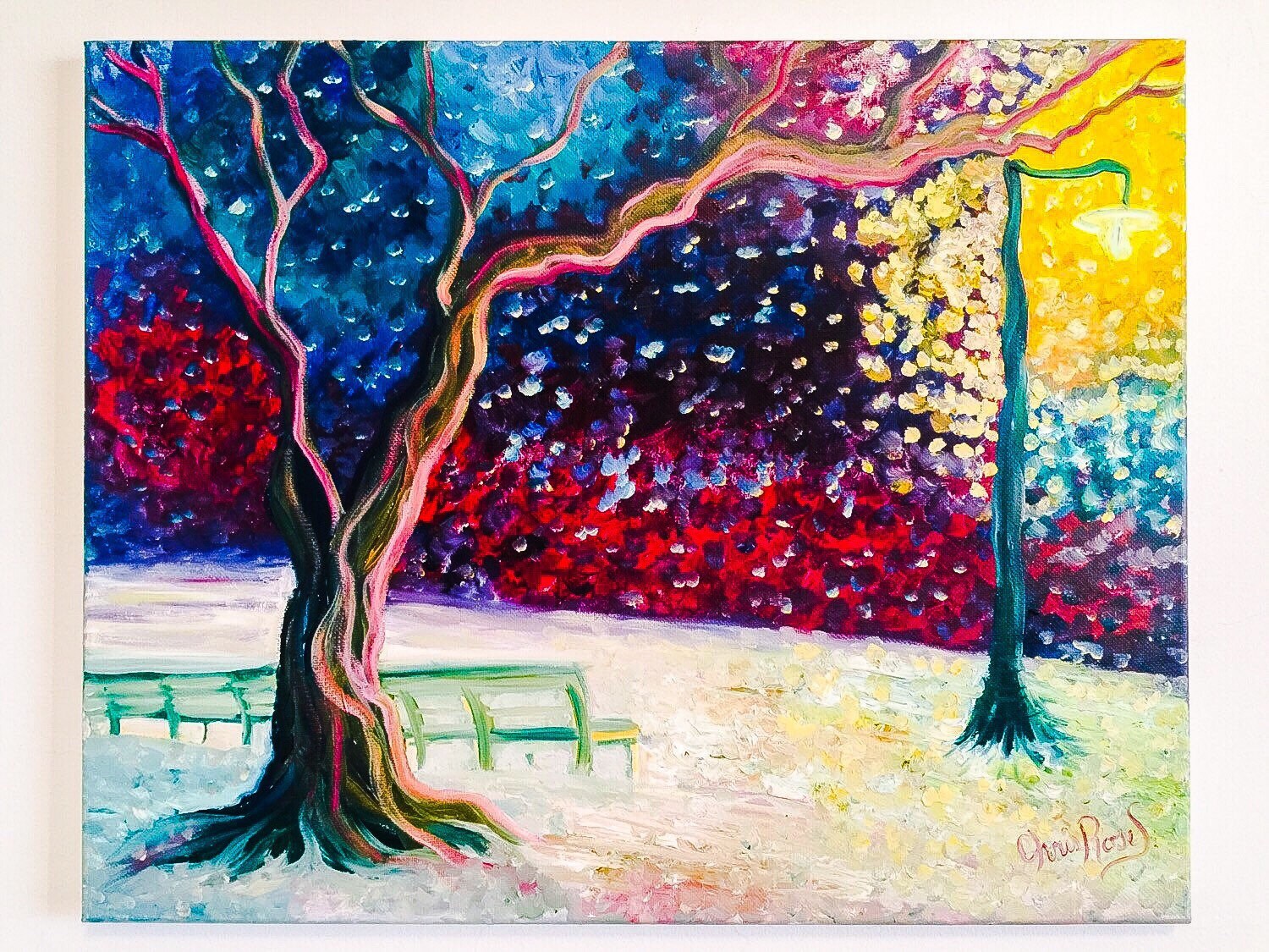 Snow In The Park Van Gogh Style Original Impressionist Oil Etsy