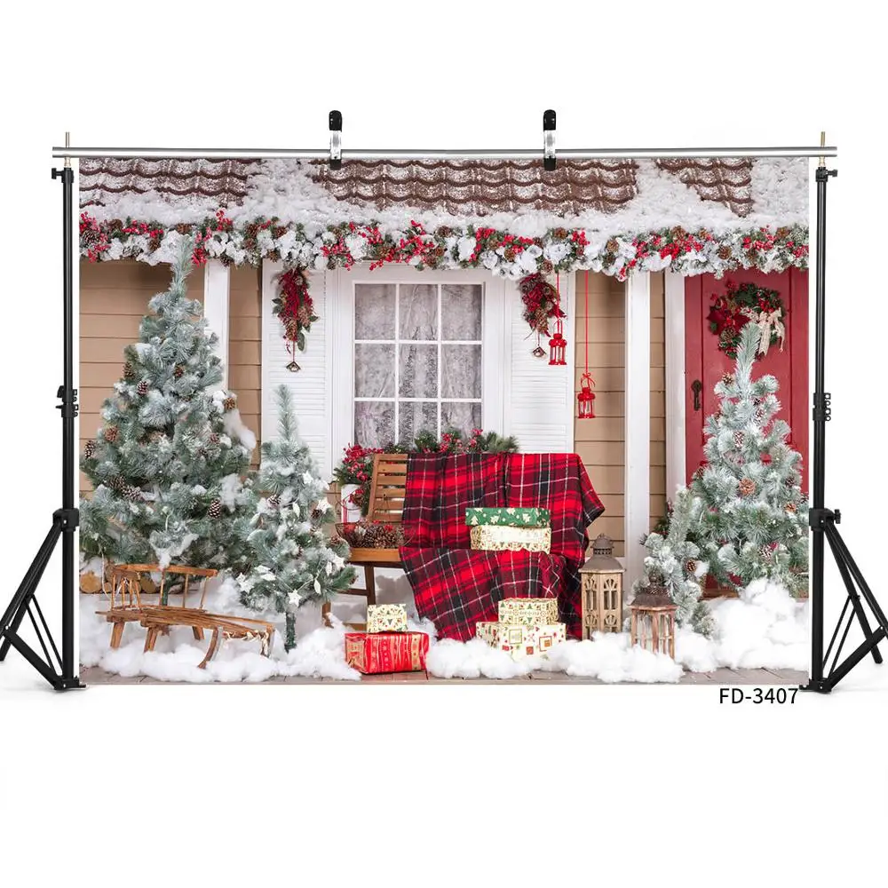 Christmas Photography Background Outdoor Bench Gifts Snow Vinyl