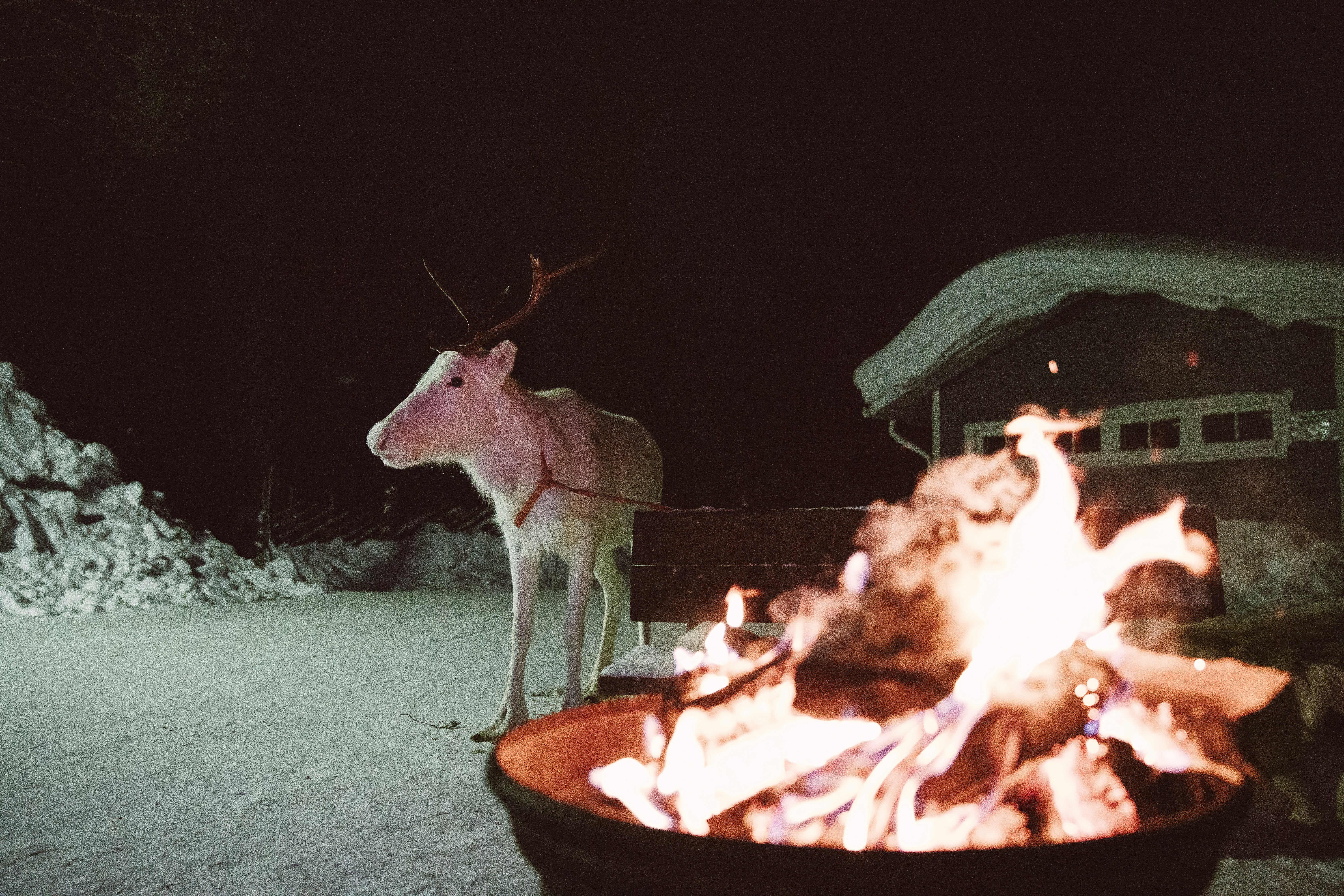 Deer Near Bench Behind Fire During Winter Photo Free Animal