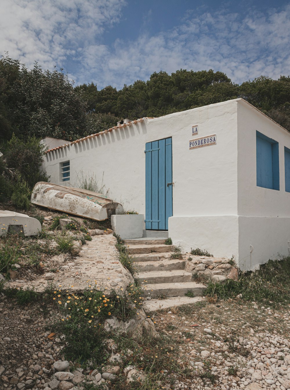 Beyond The Horizon Bench Outside Green Moth Roofed Wooden House