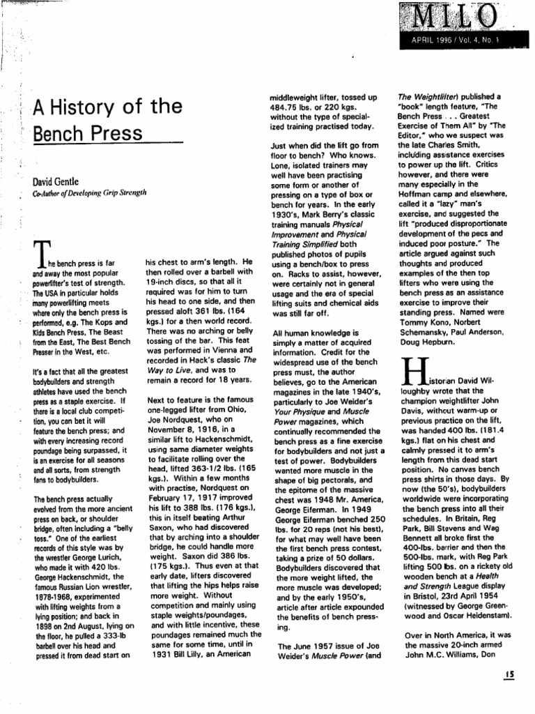 A History Of The Bench Press Individual Sports Physical Exercise