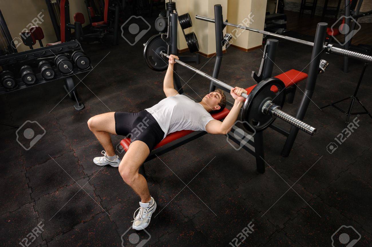 Young Man Doing Bench Press Workout In Gym Stock Photo Picture