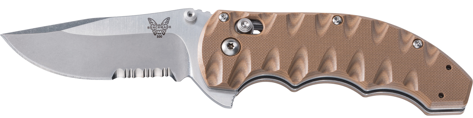 Benchmade 300 Ssn Axis Flipper Serrated Knife Euc Brown And Tan