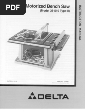 Delta 10 motorized bench saw 36 510. 10 motorized bench saw. View and download delta 36 510 type ii instruction manual online. This is not an original as originals are out of print but we use the best scans available.
