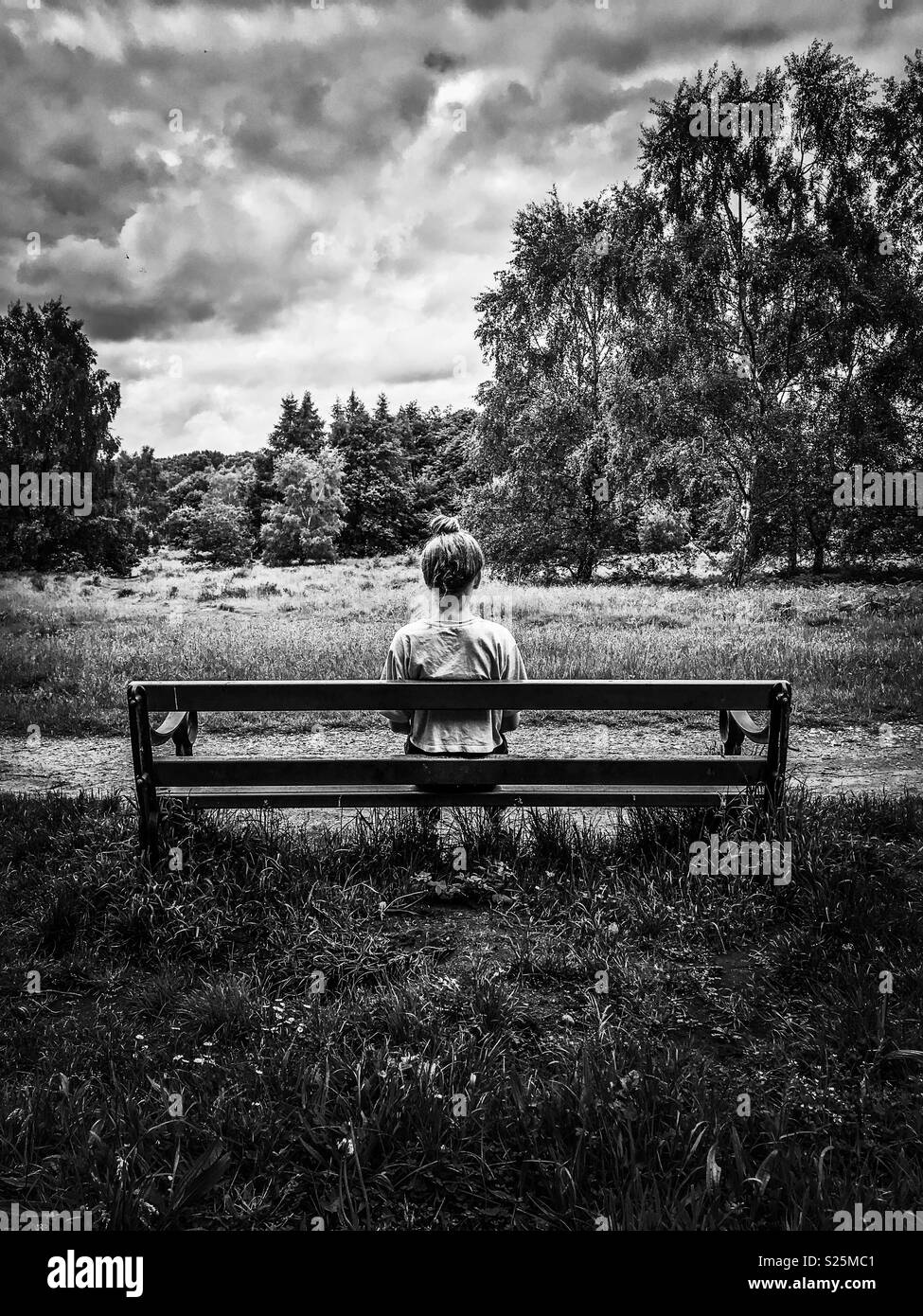 Girl Sitting Alone On Park Bench Stock Photos And Images