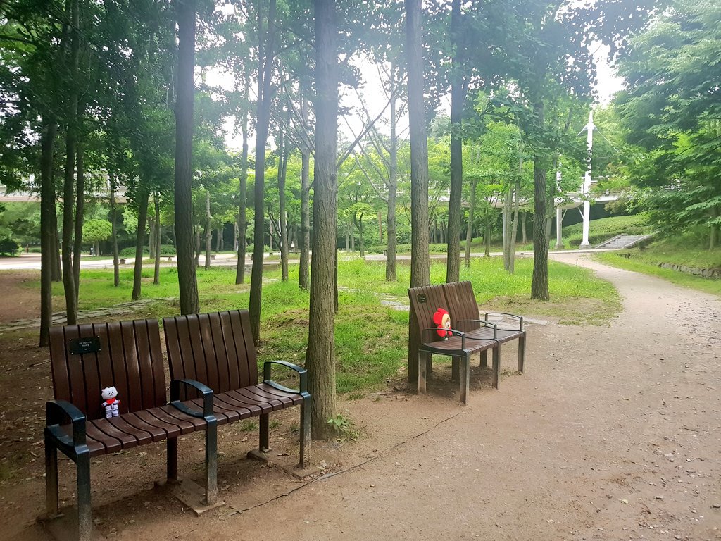 Park Map Pattern Path And Tree Ornament Bench And Squirrel Square