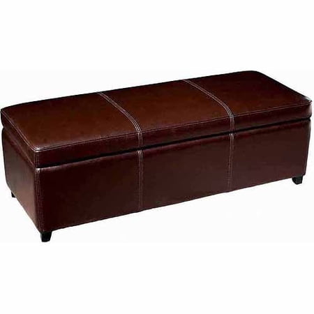 Julian Dark Brown Leather Storage Bench Ottoman W Stitching