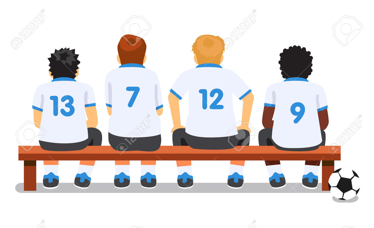 Football Soccer Sport Team Sitting On A Bench Flat Style Vector