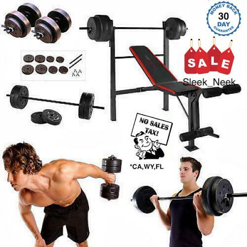 Weight Bench W Weights Set 140lb Bar Press Barbell Dumbbell Set