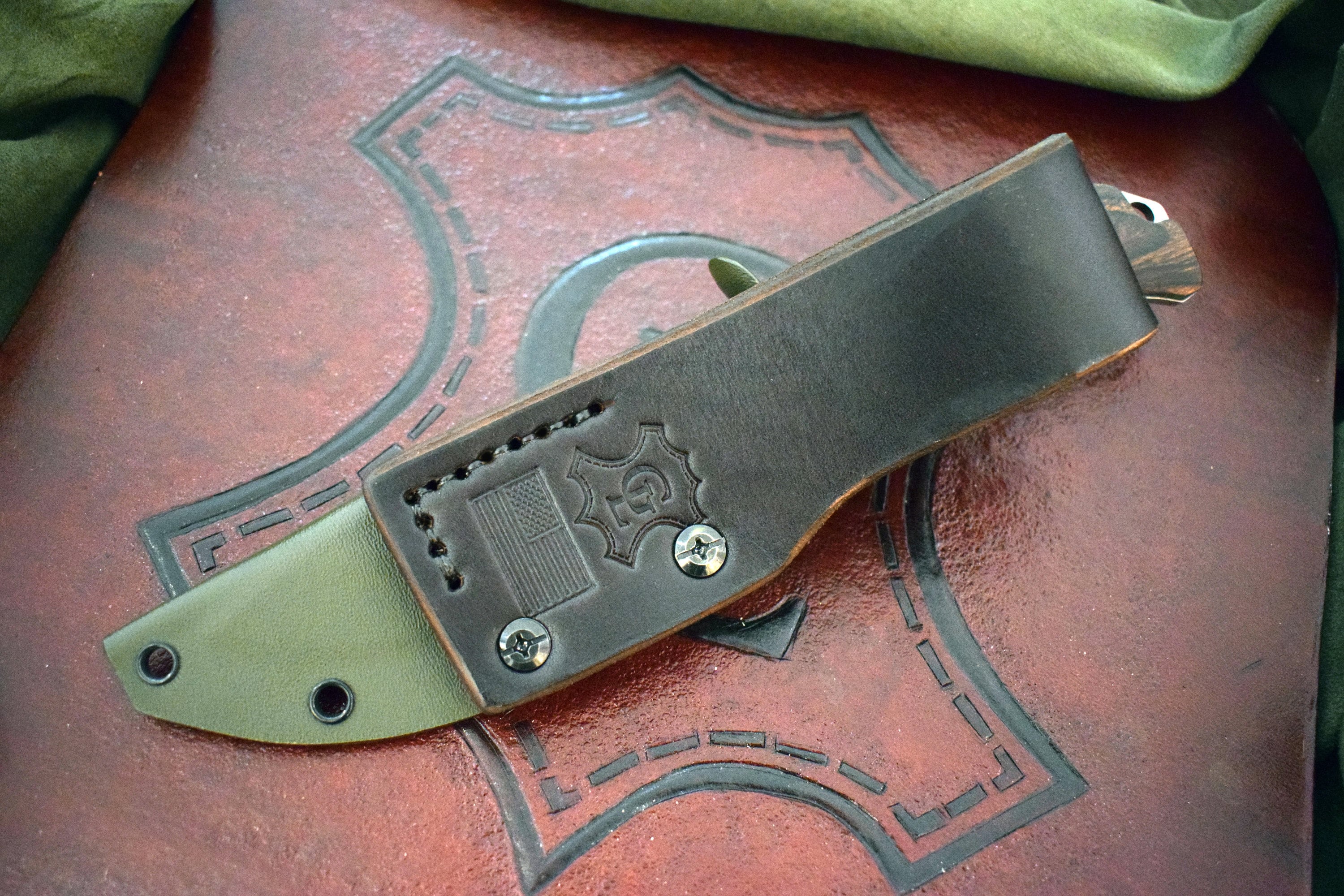 The sheath is an improvement over the thin kydex or leather sheath that comes stock from benchmade. It is made out of 8 10 ounce latigo cowhide and features a 2 wide strap that snaps. The saddle mountain skinner comes with a decent brown kydex sheath which for the most part holds the knife in place.