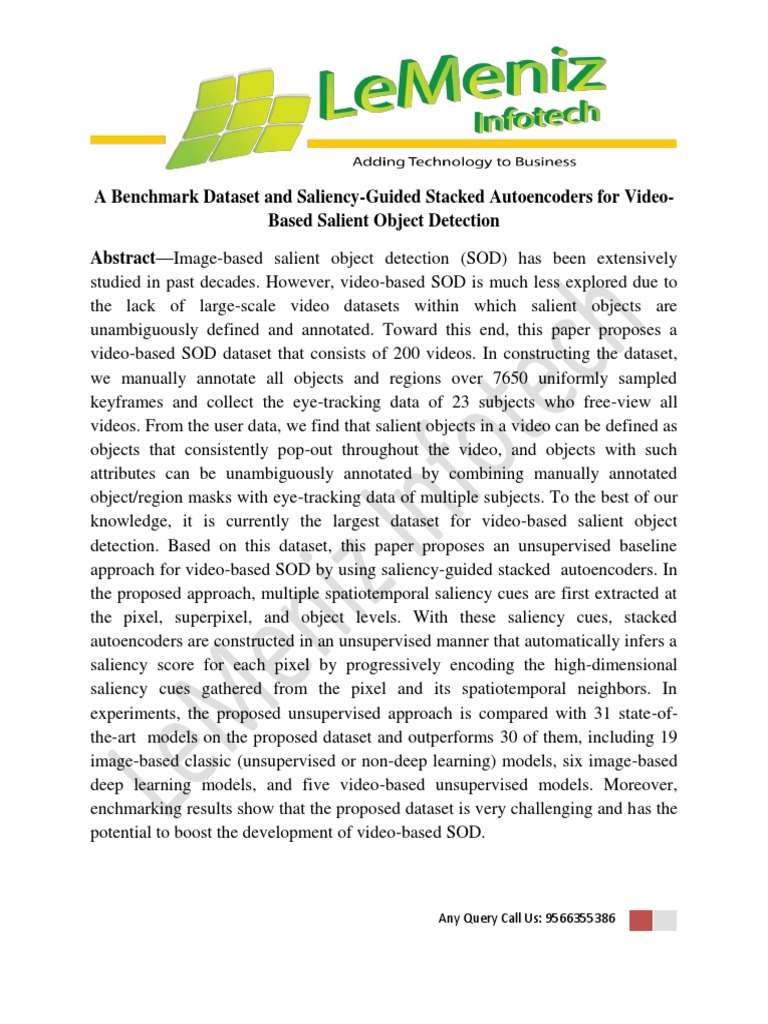 A Benchmark Dataset And Saliency Guided Stacked Autoencoders For
