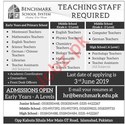 Benchmark Schools System Islamabad Jobs