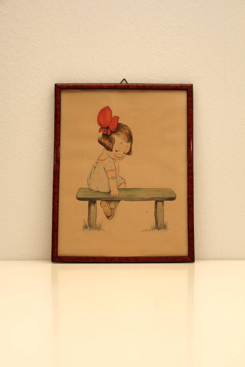 Art Deco Girl Original Watercolor Of Little Girl Crying 1925 Etsy